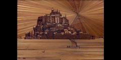 Tableau en marqueterie de paille. Le Mont Saint Michel. Signé en bas à gauche : "JC 1853". |