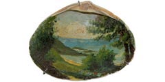 Painted shell – Brittany coast - Bord de mer en Bretagne par beau temps – Huile sur coquille de clam – Circa 1930 |