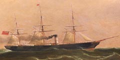 | CLARK William (1802 - 1883). Portrait of a square three-masted mixed cargo ship with an auxiliary engine. Oil on canvas. Signed bottom left. --- CLARK William (1802 - 1883). Portrait d'un trois mats carré mixte à moteur auxiliaire. Huile sur toile. Signé en bas à gauche. | ||