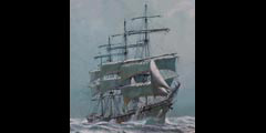 | Marin Marie – 1901 /1987 – Marin Marie fut nommé Peintre Officiel de la Marine en 1935 – Quatre mâts barque sous voilure réduite par gros temps – Gouache sur papier - Signé en bas à gauche. | ||