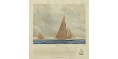 | Robert F. PATERSON. "The America and the Defenders of the America's Cup". D'après les dessins originaux de R.F. PATERSON, ensemble de 17 lithographies représentant pour la première d'entre elles le profil de tous les defenders de 1851 à 1931 | ||